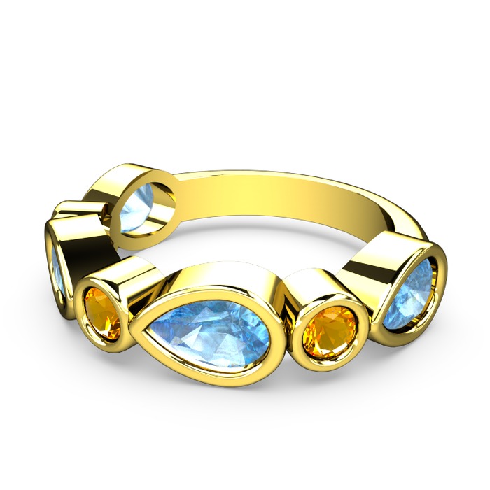 Akuamarin ve sitrin 18 ayar altın yüzük