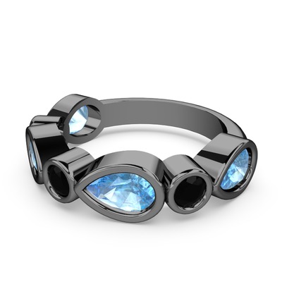 Akuamarin ve siyah zirkon 925 ayar siyah rodyum kaplama gümüş yüzük