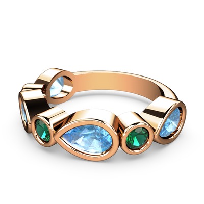 Akuamarin ve yeşil kuvars 18 ayar rose altın yüzük