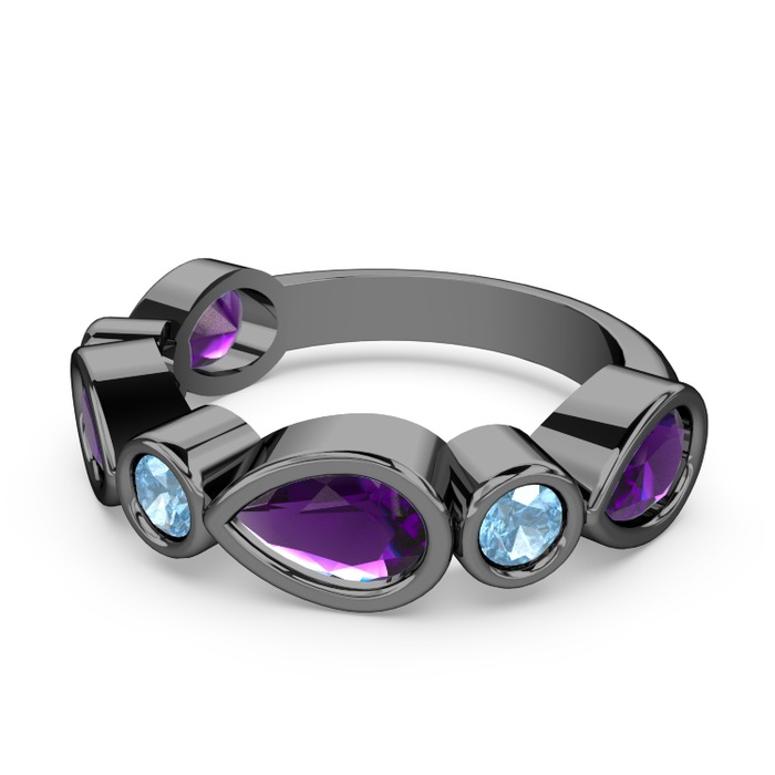 Ametist ve akuamarin 925 ayar siyah rodyum kaplama gümüş yüzük