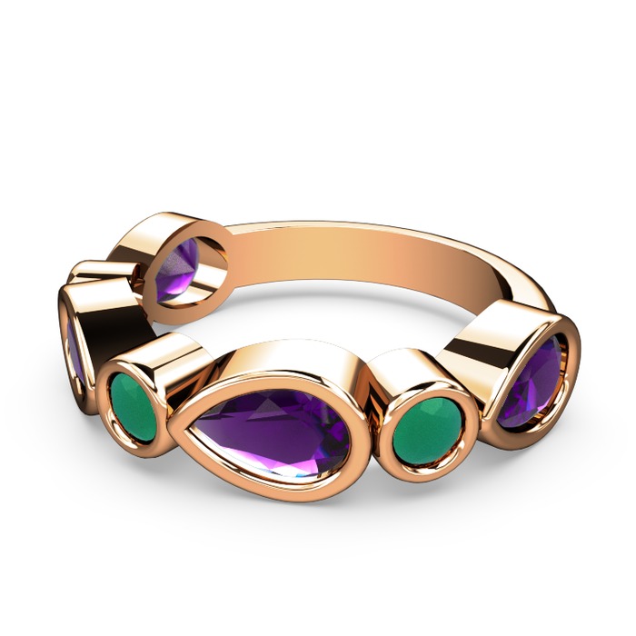 Ametist ve kök zümrüt 14 ayar rose altın yüzük