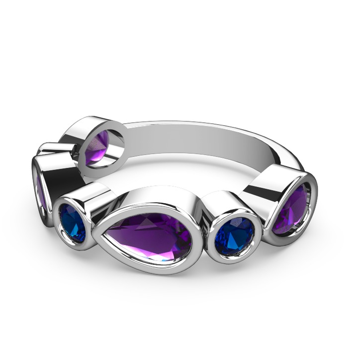 Ametist ve lab safir 14 ayar beyaz altın yüzük