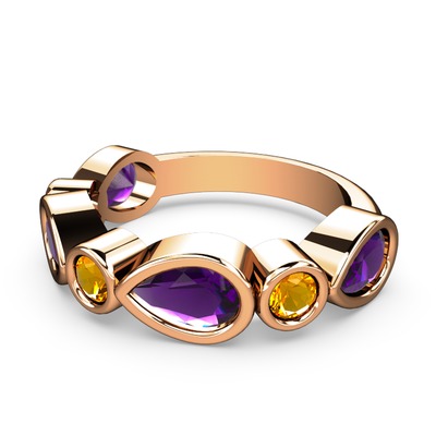 Ametist ve sitrin 18 ayar rose altın yüzük