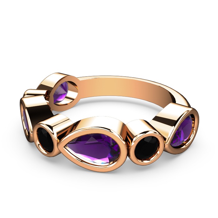 Ametist ve siyah zirkon 14 ayar rose altın yüzük