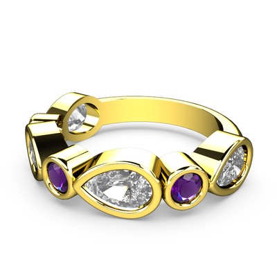 Beyaz zirkon ve ametist 18 ayar altın yüzük