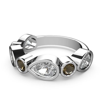 Beyaz zirkon ve dumanlı kuvars 8 ayar beyaz altın yüzük