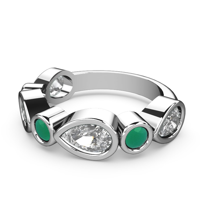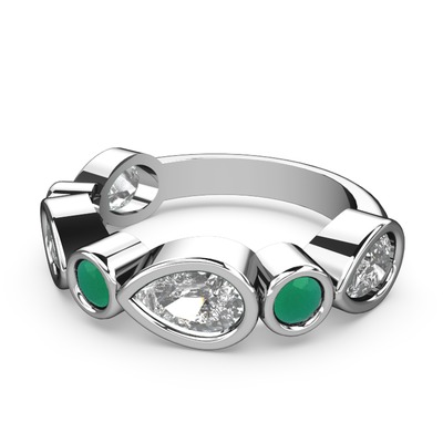 Beyaz zirkon ve kök zümrüt 18 ayar beyaz altın yüzük