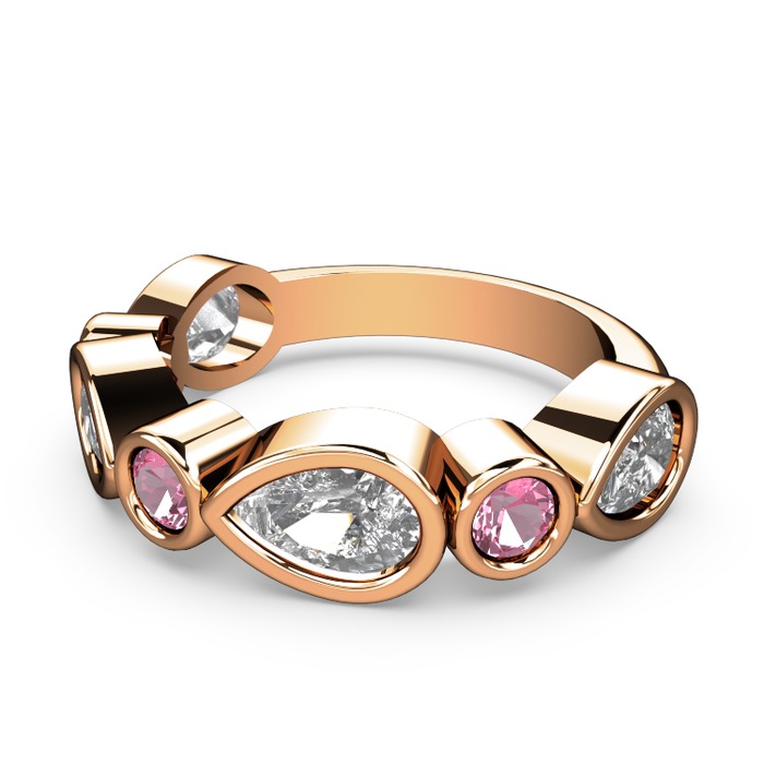 Beyaz zirkon ve pembe kuvars 8 ayar rose altın yüzük