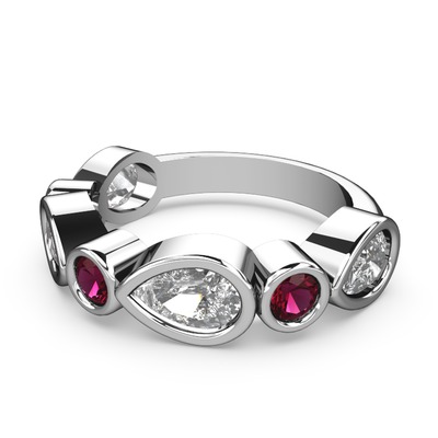 Beyaz zirkon ve rodolit garnet 14 ayar beyaz altın yüzük