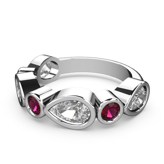 Beyaz zirkon ve rodolit garnet 925 ayar gümüş yüzük