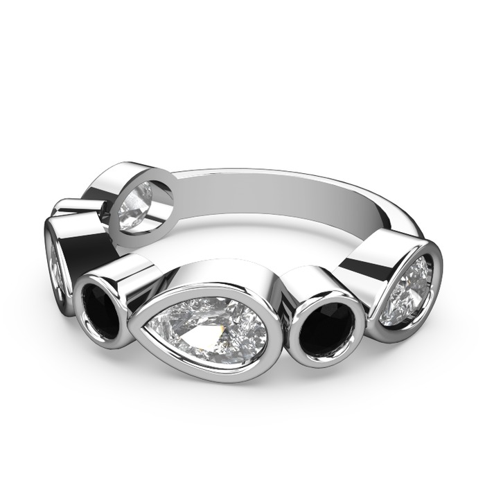 Beyaz zirkon ve siyah zirkon 8 ayar beyaz altın yüzük
