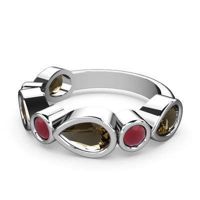 Dumanlı kuvars ve kök yakut 14 ayar beyaz altın yüzük