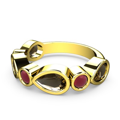 Dumanlı kuvars ve kök yakut 18 ayar altın yüzük