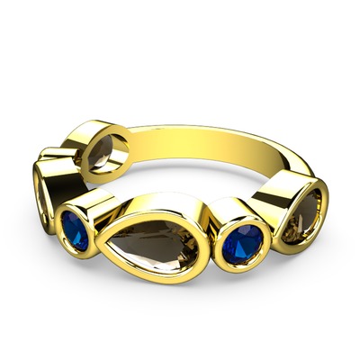 Dumanlı kuvars ve lab safir 925 ayar altın kaplama gümüş yüzük