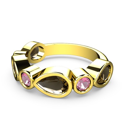 Dumanlı kuvars ve pembe kuvars 8 ayar altın yüzük