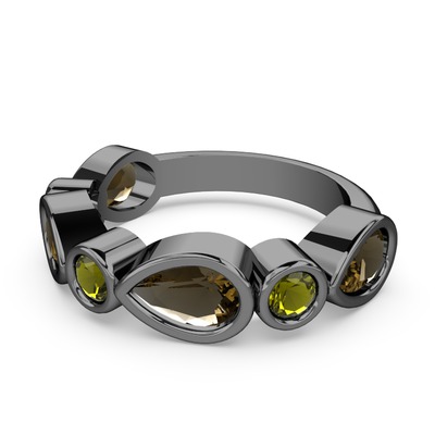 Dumanlı kuvars ve peridot 925 ayar siyah rodyum kaplama gümüş yüzük