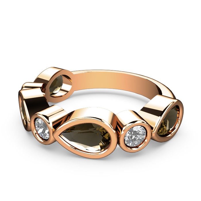 Dumanlı kuvars ve pırlanta 8 ayar rose altın yüzük (0.22 karat)