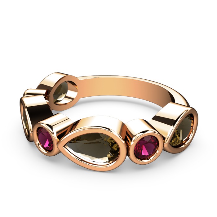 Dumanlı kuvars ve rodolit garnet 925 ayar rose altın kaplama gümüş yüzük