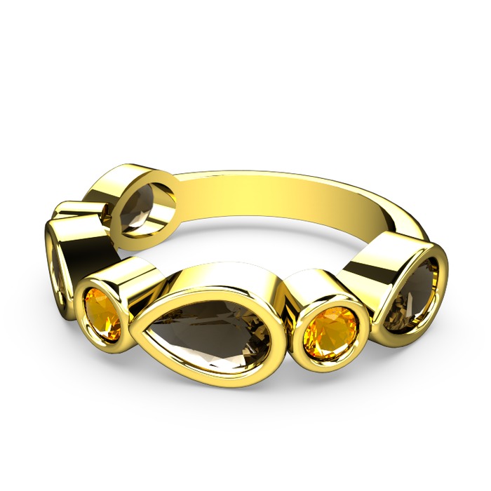 Dumanlı kuvars ve sitrin 14 ayar altın yüzük