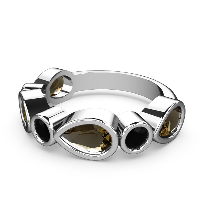 Dumanlı kuvars ve siyah zirkon 8 ayar beyaz altın yüzük