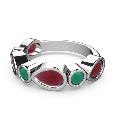 Kök yakut ve kök zümrüt 8 ayar beyaz altın yüzük