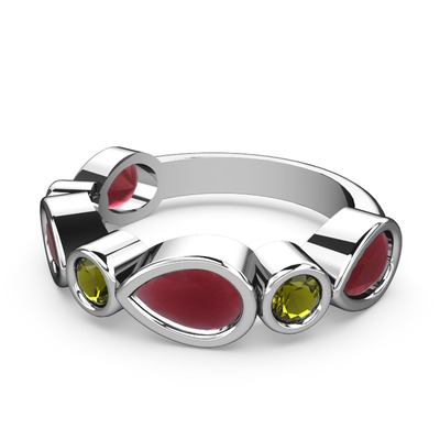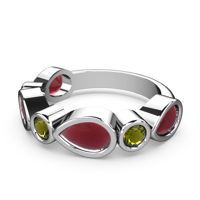 Kök yakut ve peridot 18 ayar beyaz altın yüzük