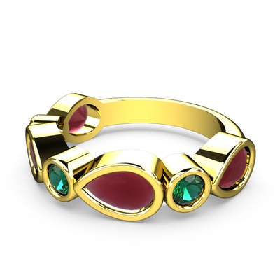 Kök yakut ve yeşil kuvars 14 ayar altın yüzük
