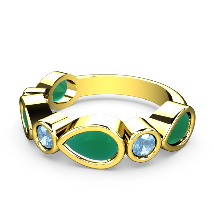 Kök zümrüt ve akuamarin 18 ayar altın yüzük
