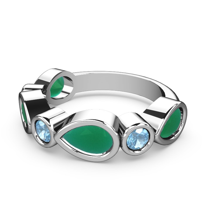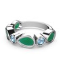 Kök zümrüt ve akuamarin 8 ayar beyaz altın yüzük