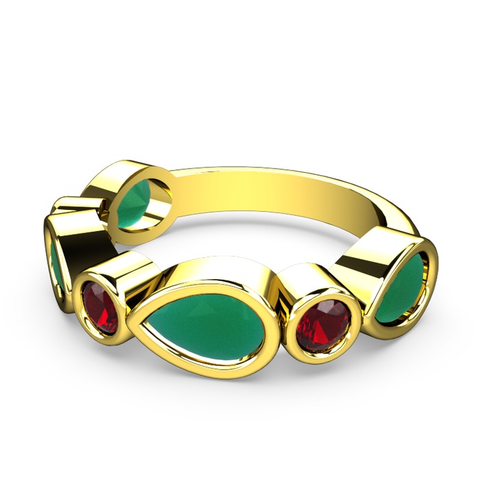 Kök zümrüt ve garnet 14 ayar altın yüzük