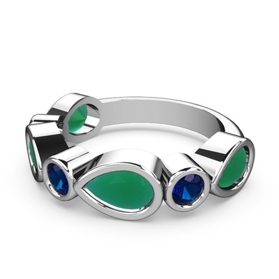 Kök zümrüt ve lab safir 18 ayar beyaz altın yüzük