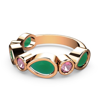 Kök zümrüt ve pembe kuvars 14 ayar rose altın yüzük