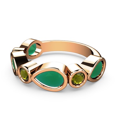 Kök zümrüt ve peridot 925 ayar rose altın kaplama gümüş yüzük