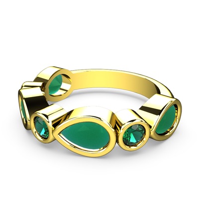 Kök zümrüt ve yeşil kuvars 925 ayar altın kaplama gümüş yüzük