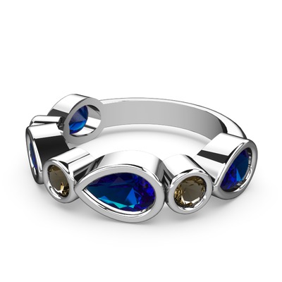 Lab safir ve dumanlı kuvars 8 ayar beyaz altın yüzük