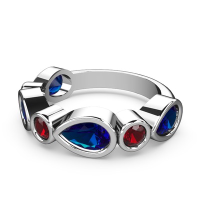 Lab safir ve garnet 14 ayar beyaz altın yüzük