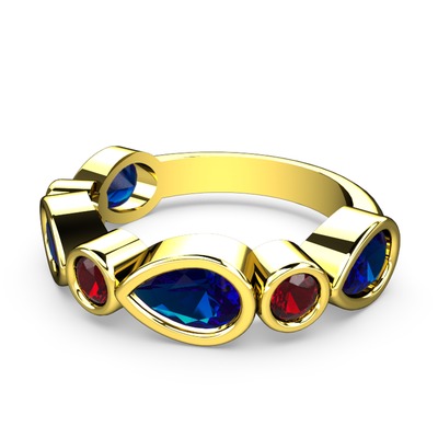 Lab safir ve garnet 925 ayar altın kaplama gümüş yüzük