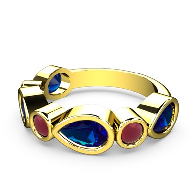 Lab safir ve kök yakut 8 ayar altın yüzük