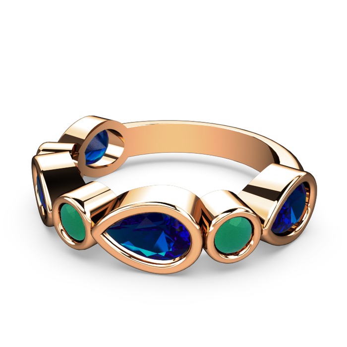 Lab safir ve kök zümrüt 925 ayar rose altın kaplama gümüş yüzük