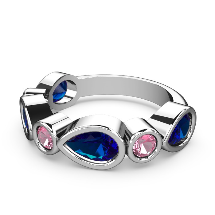Lab safir ve pembe kuvars 14 ayar beyaz altın yüzük