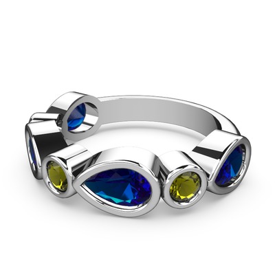 Lab safir ve peridot 925 ayar gümüş yüzük