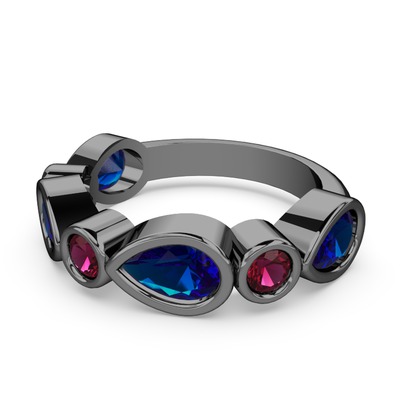 Lab safir ve rodolit garnet 925 ayar siyah rodyum kaplama gümüş yüzük