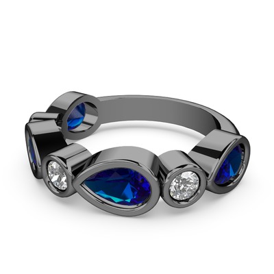 Lab safir ve swarovski 925 ayar siyah rodyum kaplama gümüş yüzük