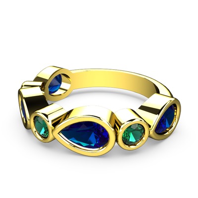 Lab safir ve yeşil kuvars 8 ayar altın yüzük