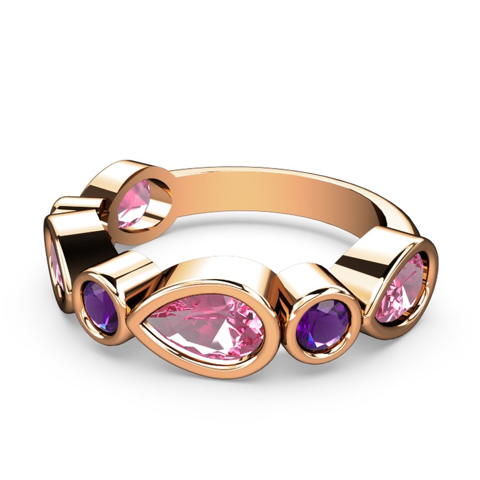 Pembe kuvars ve ametist 8 ayar rose altın yüzük