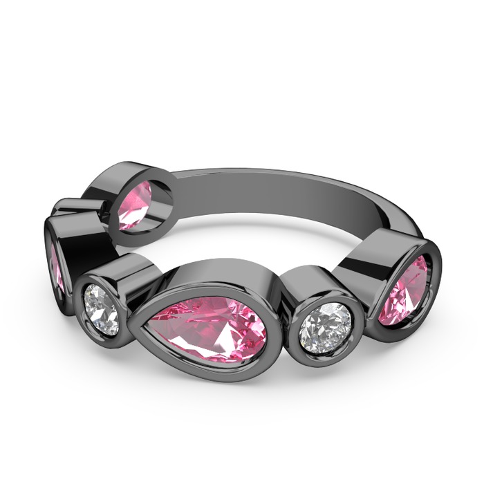 Pembe kuvars ve beyaz zirkon 925 ayar siyah rodyum kaplama gümüş yüzük