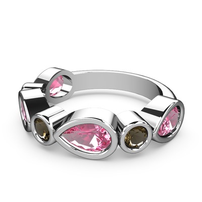 Pembe kuvars ve dumanlı kuvars 14 ayar beyaz altın yüzük