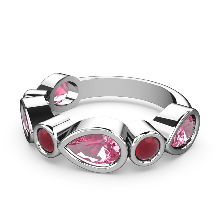 Pembe kuvars ve kök yakut 8 ayar beyaz altın yüzük