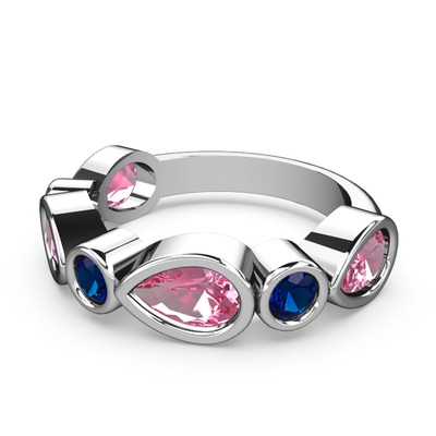 Pembe kuvars ve lab safir 14 ayar beyaz altın yüzük