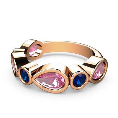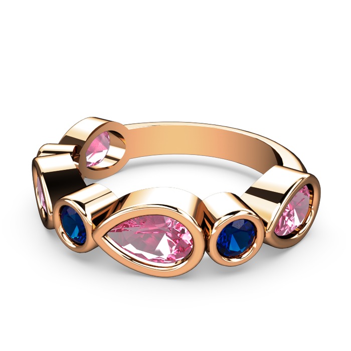 Pembe kuvars ve lab safir 14 ayar rose altın yüzük